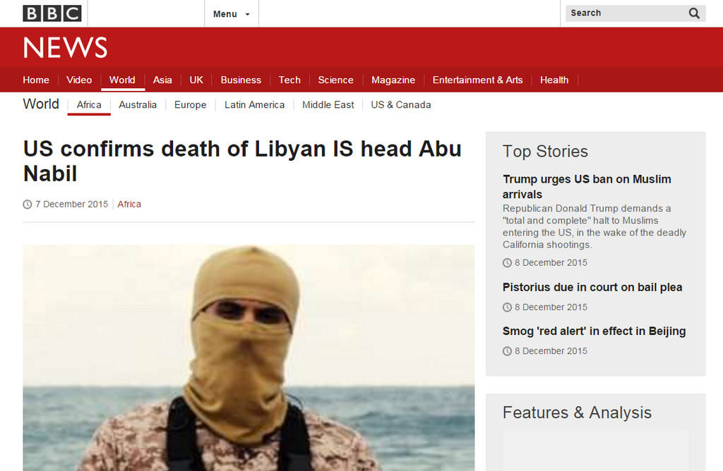 ▲美國國防部證實,於上個月中旬擊斃伊斯蘭國位於利比亞的首腦納比爾。(圖/翻攝自bbc)