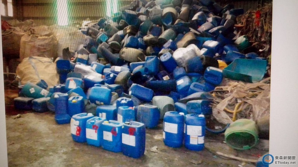 檢警8日會同桃園市環保局,前往「鑫金塑膠公司」搜索,在沒有廢棄物清運處理許可的工廠內,發現堆成小山狀的化學液體專用塑膠桶,數量多到無法估算。另外還有塑膠桶處理後,裝滿剩餘底土、殘渣、廢液的水泥槽。經過環保局人員檢測,發現PH值竟然高達12.5屬於強鹼物質。