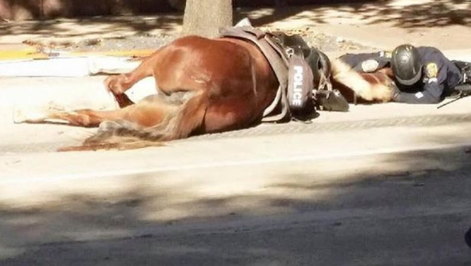 這是讓人心碎的一幕。德州休士頓警馬夏洛特(Charlotte)本月3日在大街上執行巡邏任務時,疑因受到突發交通狀況的驚嚇而失控,牠將騎警葉莉芳(D. Herrejon)從馬背上摔下來後衝上車道,結果遭到一輛卡車撞成重傷。