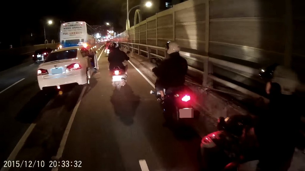 根據網友上傳的行車記錄器影片,10日晚間8時半,轎車從台北市要往新北市永和方向,一路狂飆,結果卻卡在汽車道和機車道間的分隔島。