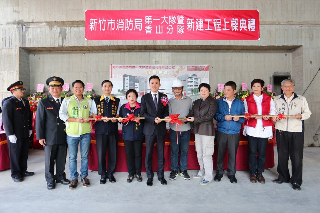 新竹市消防局11日舉行「第一大隊暨香山分隊新建工程上樑典禮」,一年來除了陸續增補37名消防人力,並增加845萬預算,汰換打火弟兄救災裝備,讓消防同仁執勤更有保障,也提供巿民更安全的生活環境。