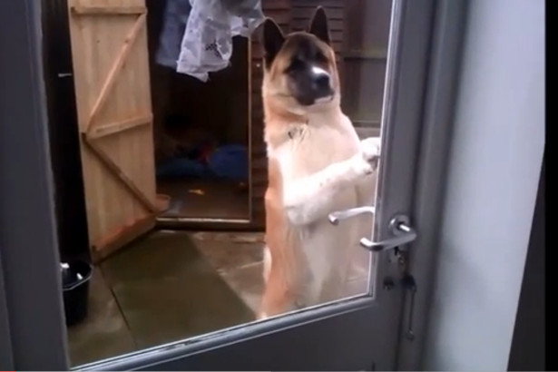 ▲一頭被關在屋外的秋田犬要進屋,「自立」自強不求人!(圖/翻攝自網路)