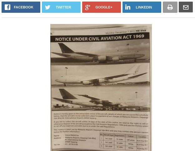 管理馬來西亞吉隆坡國際機場(Kuala Lumpur International Airport )的私人公司,先前曾在當地報紙刊登一則「地表最強失物招領」,要尋找3架被丟在機場的波音747-200F客機的主人。在昨(11)日,航空貨運公司Swift 宣稱是這些飛機的擁有者,但對於機場大動作登報的行為,他們感到相當地錯愕。