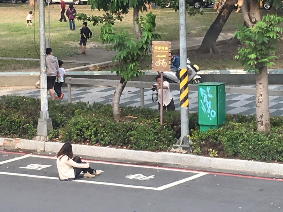 ▲玩命!女子坐在馬路上外拍。(圖/翻攝自爆料公社/下同)