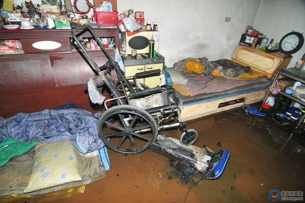 ▲一名老翁因為電暖器太靠人體又持續使用,引燃輪椅上毛毯,造成老翁傷燙傷。(圖/台北市消防局提供)
