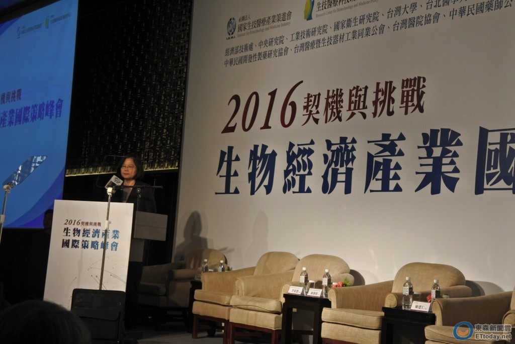 民進黨總統候選人蔡英文14日出席「生物經濟產業國際策略峰會」,致詞時提到,「台灣有發展生醫產業的優勢,就欠一個可靠的政府」,協助企業撐過開發階段,把研發資源整合起來,並且跟全球市場有更緊密的連結,民進黨執政之後,她將以六項行動推動生技產業的成長。