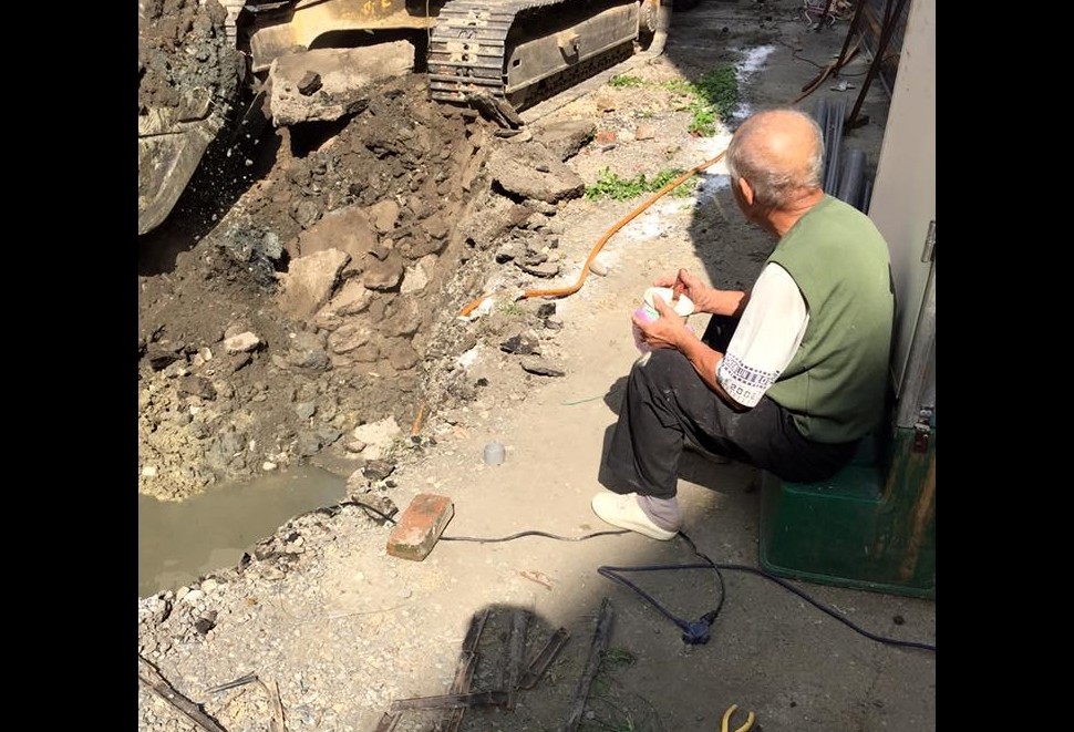 一名陳姓網友14日在「爆廢公社」貼文,拍下工地中長者用餐的畫面,寫下「用樓賴吧(羅賴把)也能吃麵」。看起來相當不可思議,頭髮已花白的老者就這麼坐在工地,褲子上滿是汙痕,地上則散落各式工程工具。他凝視著前方的挖土機,左手中拿著小碗,右手握著一支羅賴把(螺絲起子),一張圖,一切盡在不言中。