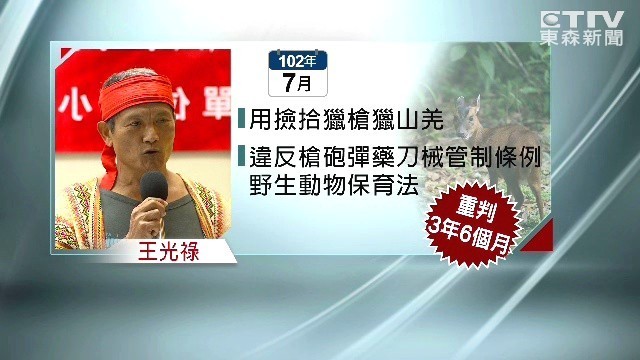 台東海瑞鄉布農族的王光祿2年前為母親上山打獵,獵捕長鬃山羊和山羌,因違反《槍砲彈藥刀械管制條例》、《野生動物保育法》,遭判處3年6個月徒刑。台東地檢署原訂今天上午9時傳喚王到案,但他堅稱無罪拒絕入獄;檢方表示,王光祿已提起非常上訴,將依最高檢署審議結果,再決議拘提。