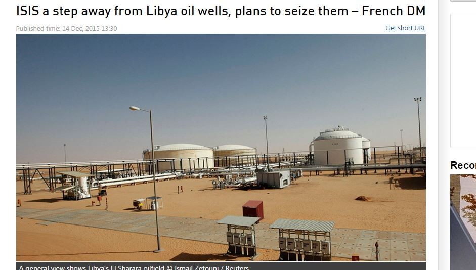 法國國防部長勒德里安(Jean-Yves Le Drian)14日表示,恐怖分子IS正在擴張勢力範圍,他們為了接近利比亞的油井,打算從該國沿岸的重要據點擴大到內陸地區,以便掠取油源利益。法國軍方已派出偵察機到利國,進行情報搜集工作。