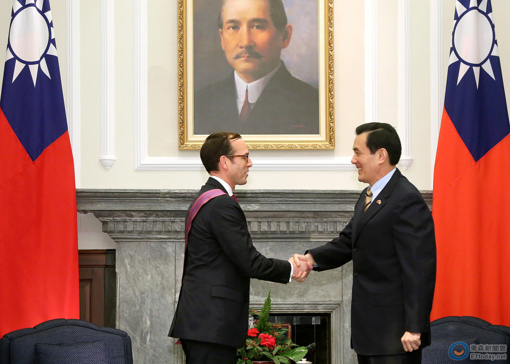 ▲馬英九頒授「特種大綬景星勳章」給麥艾文。(圖/取自總統府flickr,下同)