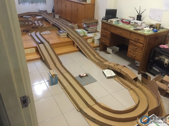 ▲有網友自製一整組四驅車軌道,占滿了自己的整個房間。(圖/網友邪惡R授權提供,下同。)