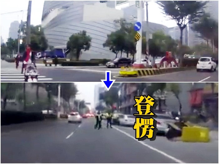 影片顯示,事發於16日下午3時許,駕駛行經南平路要在中正路時綠燈要右轉,但行人正在通行過馬路,對向也正好有一輛白色自小轎車也要左轉,白車先是鑽縫通過,此時一名推著嬰兒車的媽媽走近,駕駛跟著要加速轉彎,沒想到一右轉,馬上有員警走出來,揮手「嗶嗶」將她攔下。