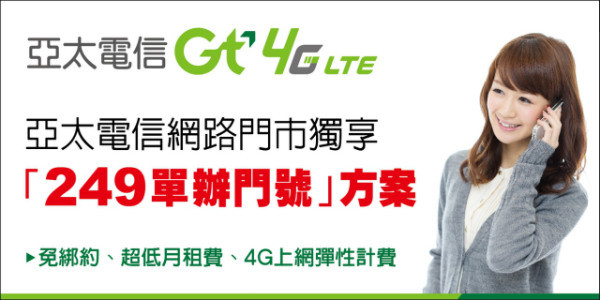 亞太電信為針對輕、中度行動上網需求的消費者~推出網路門市獨賣「249單辦門號」方案,主打「免綁約」、「超低月租」及「真正4G網路用量彈性計價」三大優惠,提供給消費者更多自由選擇;另外對於上網用量較大的消費者,即日起至12/31止,更推出申辦「指定4G手機方案,4G上網流量加倍送」的聖誕好禮!