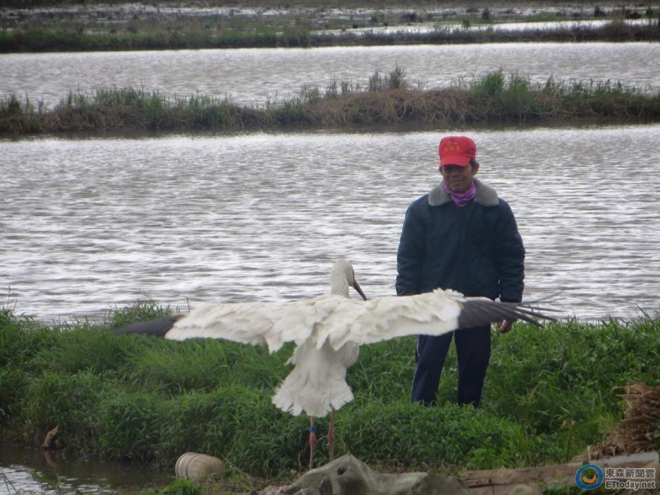 ▲小白鶴今天上午已經成功在金山磺清大橋原地野放,老農超開心。(圖/新北市動保處提供)