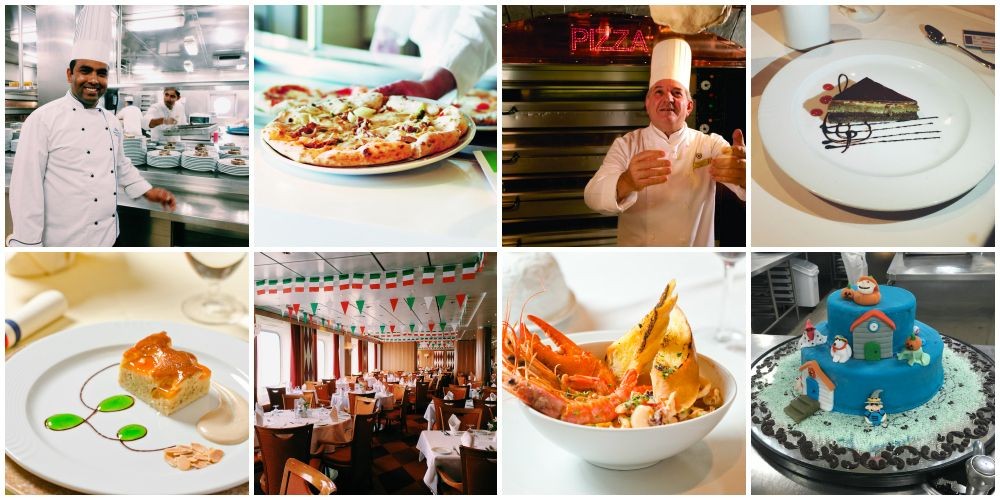 船上的美食餐廳全部都是免費的,只有一間付費餐廳位在第12層的麥列菲高俱樂部餐廳。餐廳的美食除了義大利料理,還有中式,西式,日式,印度式,如果你不知道要挑什麼來吃,不如每天都挑不同的菜色來嘗嘗。特別的是,如果遇上同行朋友家人的生日,你還可以向餐廳點一個特製蛋糕,主廚會為瘦星特製打造有他的名字在上面的生日蛋糕唷!到底郵輪上還有什麼其他美食呢,快跟著我們一起來看看從早吃到晚怎麼吃!