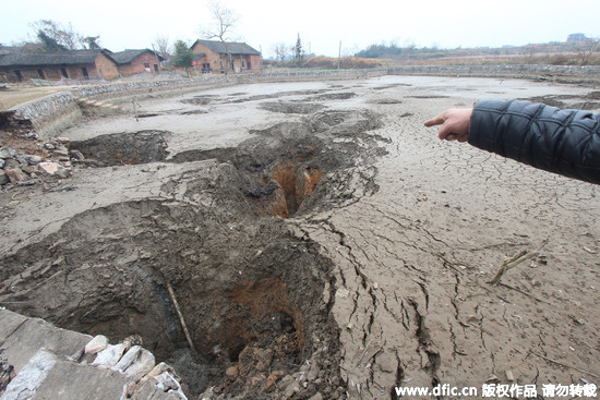 據《中國網》報導,當地居民表示,早上起來發現家裡的魚塘連魚帶水都「沒有了」,村內幾十口井也都乾枯、水倒入也都看不見蹤影,還有人去菜園拔菜差點掉入塌陷的洞中,幸好攀住洞的邊緣,才幸免於難。