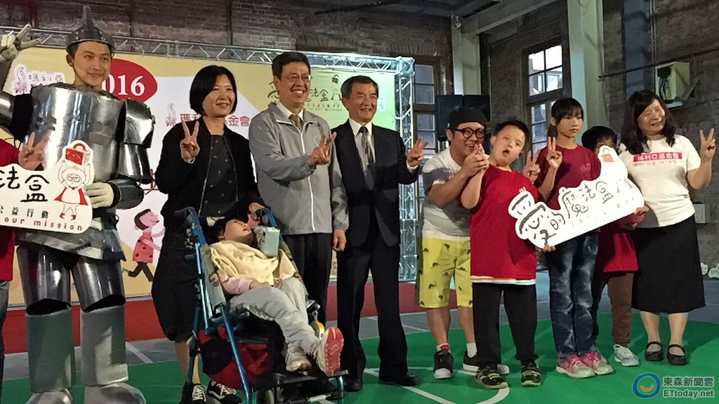 陳建仁23日出席瑪利亞社會福利基金會舉辦第10屆「愛的魔法盒-小學生公益行動」記者會,與藝人納豆及2015年小學生公益行動首獎得主台中市石城國小五年甲班同學,一起特教躲避球保衛戰,他擔任比賽裁判長。