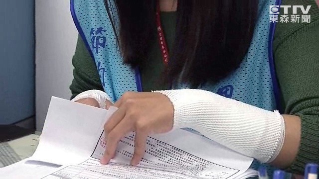 畫面中可以看到吳小姐的雙手都有包紮、脖子上還貼著膠布,可以想見當時的衝突有多大,吳小姐說,「就雙手瘀青,和一些挫傷,挨打我也沒有反擊。」事發原因是,要申請節能補助的民眾不滿等太久,拿出平板要搜證,雙方發生口角,就失控打人。但她事後還是很敬業的在崗位工作。