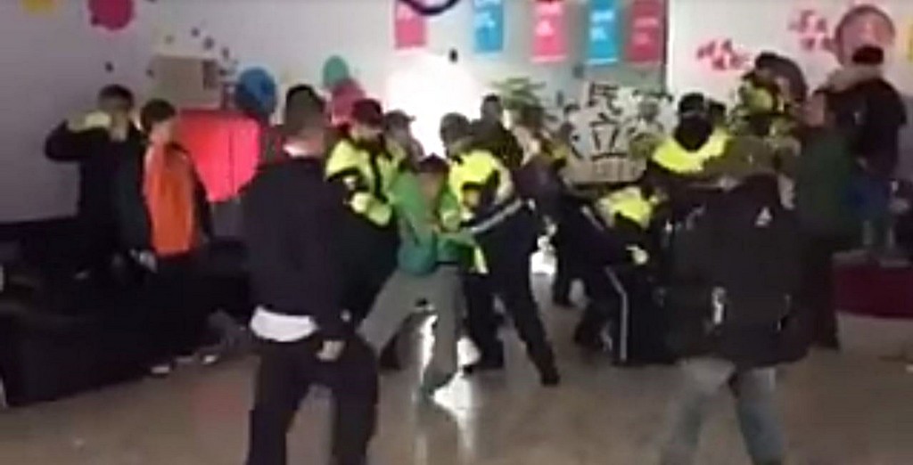一段國民黨總統、副總統候選朱立倫和王如玄「桃園八德競選總部爆發群毆」的影片27日在網路上瘋傳,畫面中大批警力和抗議民眾拉扯不斷,引起桃園民眾議論。警方趕緊出面澄清,桃園八德並沒有朱王的競選總部,而影片中爆發衝突的則是25日的抗議團體噴漆事件。