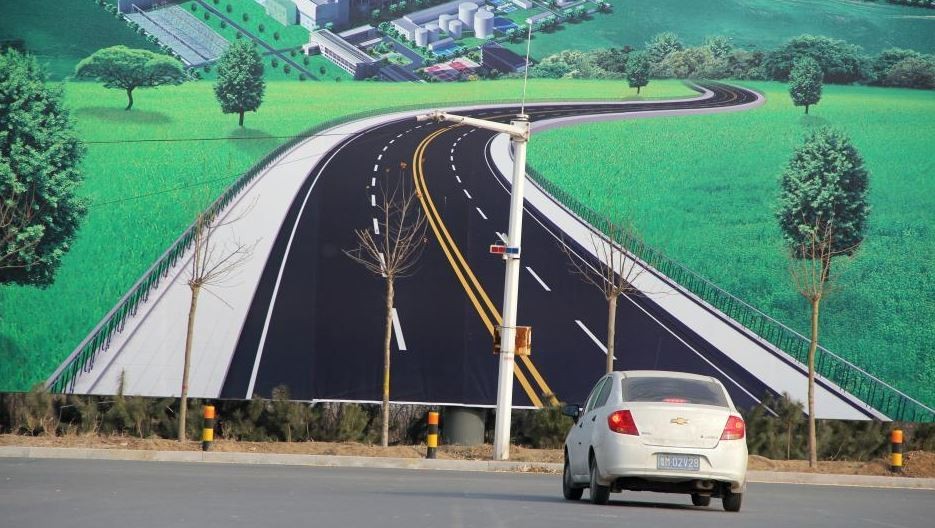 從照片來看,巨型3D畫擬真度十足,在道路盡頭產生繼續「延伸」的幻覺,極具視覺衝擊力。不過,3D畫作後方看起來非常荒涼,周邊的景色也與內容相差甚遠,可能是因為要綠化環境才豎立。