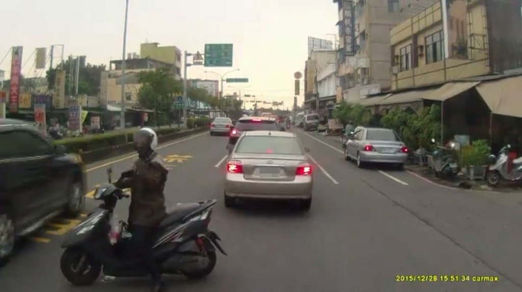 林男在「聯結車 大貨車 拉拉隊 照片影片資訊分享團」臉書社團PO出行車記錄器影片,只見他在一處路口等紅燈;此時,他看到一名女騎士要從面前穿越,但發現她會撞上一輛休旅車,連忙按喇叭示警;女騎士聽見後急煞,沒和休旅車發生事故。
