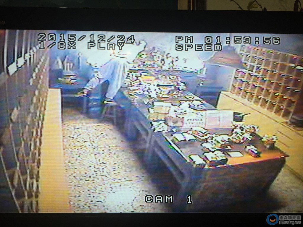 ▲呂姓男子爬上神桌偷金牌。(圖/台中市政府警局霧峰分局授權提供,下同。)