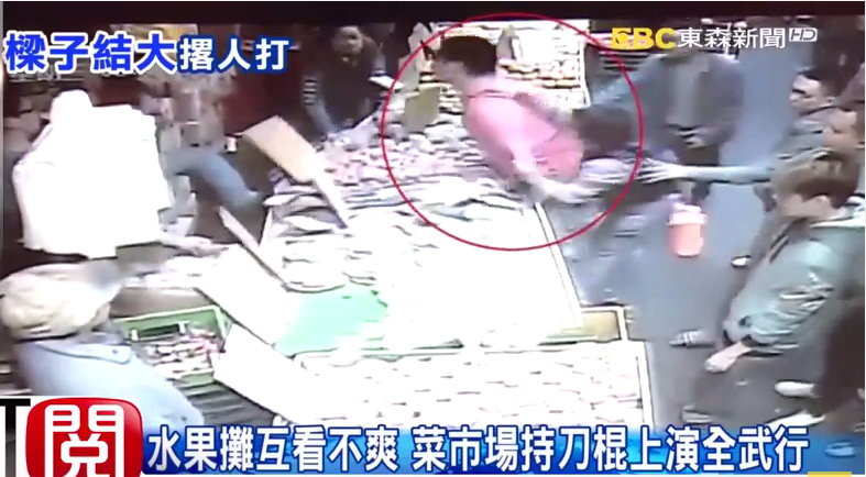 新北市中和區一處菜市場有2家水果攤老闆互看不順眼,雙方都叫來朋友助陣,沒想到竟發生口角,還在人來人往的市場裡持鋁棒、木棍鬥毆,嚇壞路過買菜的婆婆媽媽。警方趕到現場,雙方人馬都掛彩受傷,事後帶回6名男子,雙方火氣很大,決定互告傷害。