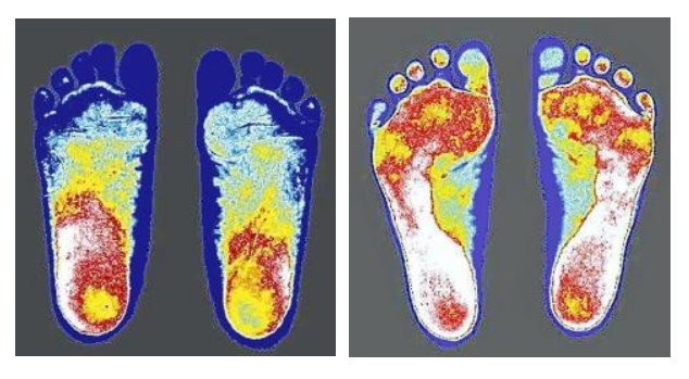 所謂「浮趾病」,就是雙腳站立時,至少有一根腳趾頭沒辦法接觸到地面;和一般正常狀態的腳掌相比,患有「浮趾病」的患者所蓋出的腳印,幾乎看不到腳趾頭,也就是腳趾無法著地。