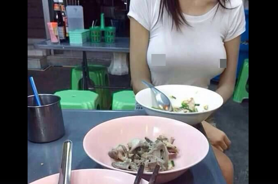 網友在文中寫道,「昨天去吃麵,一個不認識的女生坐在對面;我吃完後再續一碗大碗的,第一次吃麵吃這麼久...」隨後還附上襯托女生雄偉上圍的白T照,把許多網友都給療癒了。