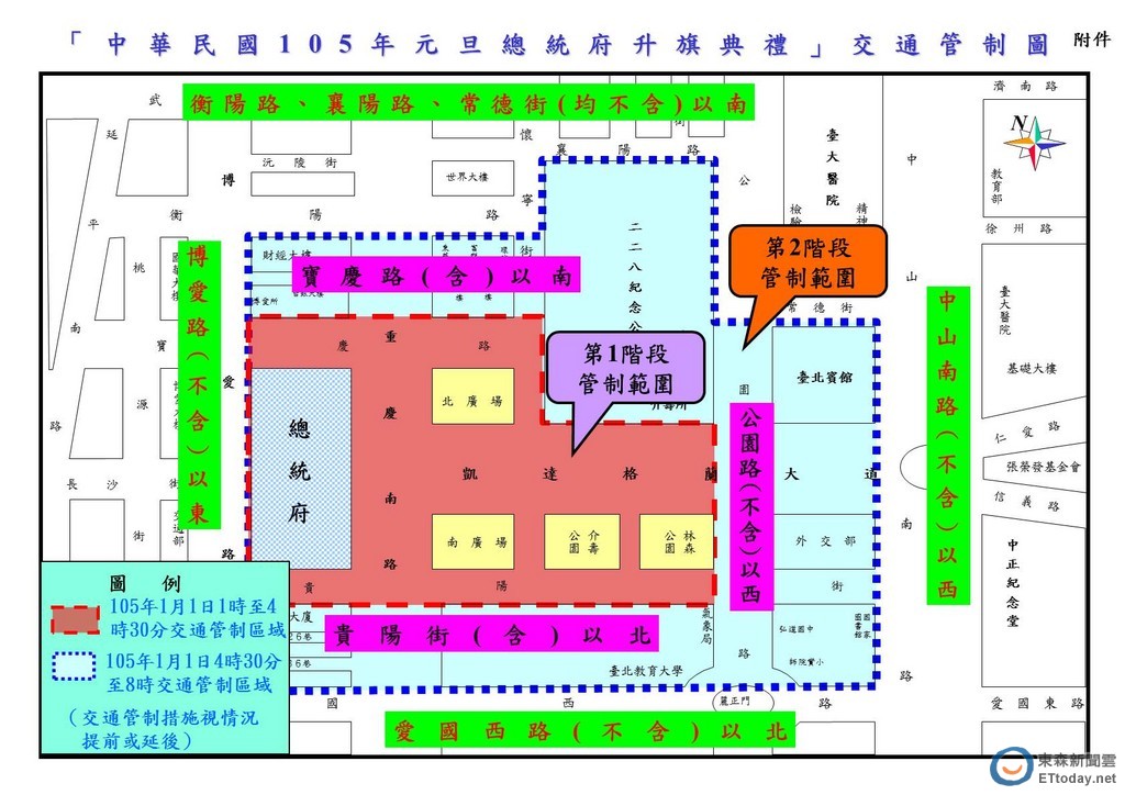 ▲針對元旦總統府前升旗典禮,台北市交通大隊公布最新交管疏導範圍。(圖/記者楊佩琪翻攝)