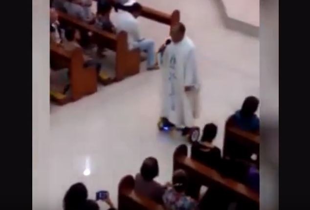最近在網路上流傳著一段將近3分鐘的影片,菲律賓一名神父平安夜主持彌撒時,踩著電動滑板車在教會裡「跑來跑去」,現場民眾忍不住拿起手機拍照、錄影。影片上傳到網路上後引發網友不同意見討論,有人認為這樣很有創意,但也有人覺得這太荒謬。對此,當地教區已發出聲明表示,已將該名神父停職。