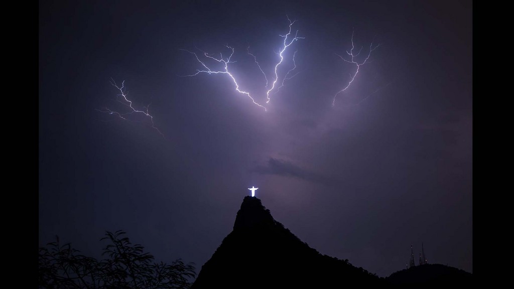 《新華社》選出60張最具代表性的2015年度照片,其中有一張9月27日在巴西里約熱內盧(Rio de Janeiro)科爾瓦多山拍攝到的照片,天空中的閃電交加,搭配白色會發光的耶穌像,畫面令人震懾。
