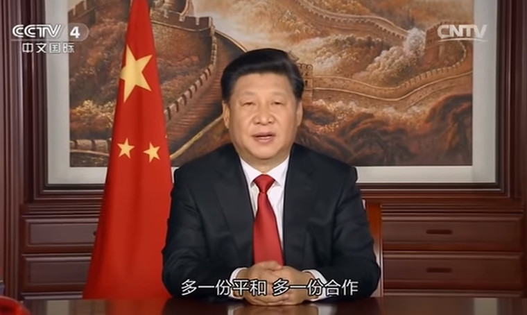 習近平在中央電視台晚間七點的新聞聯播中發表新年賀詞,其中也一如以往向台灣同胞問候,並提到「我和馬英九先生在新加坡會面,實現了跨越66年時空的握手,表明兩岸關係和平發展是兩岸同胞的共同心願。」