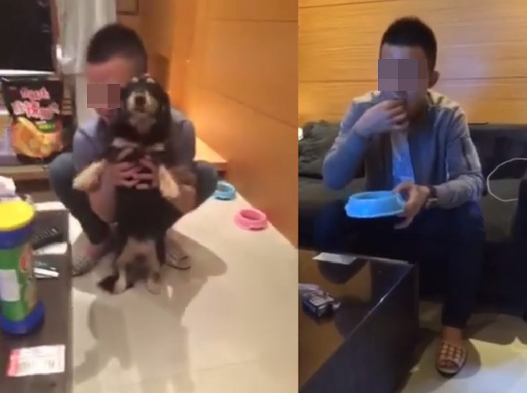 ▼男子吃狗飼料道歉,一度作嘔。(圖/翻攝「黑色豪門企業」臉書粉絲專頁)
