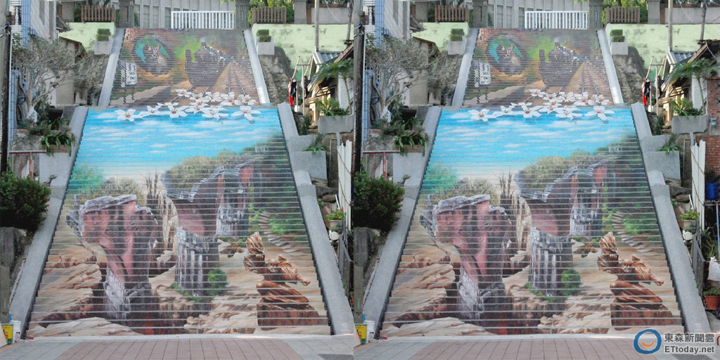爬樓梯也能成為一件有趣的事!最近在苗栗縣三義鄉的建中國小前,出現了驚人的「3D地景彩繪階梯」,更將當地著名的龍騰斷橋、油桐花、勝興車站及石虎都融入在階梯中,而負責該項創作的鄉土油畫家魏榮欣表示,「彩繪會一直存在,直到作品完全毀損。」