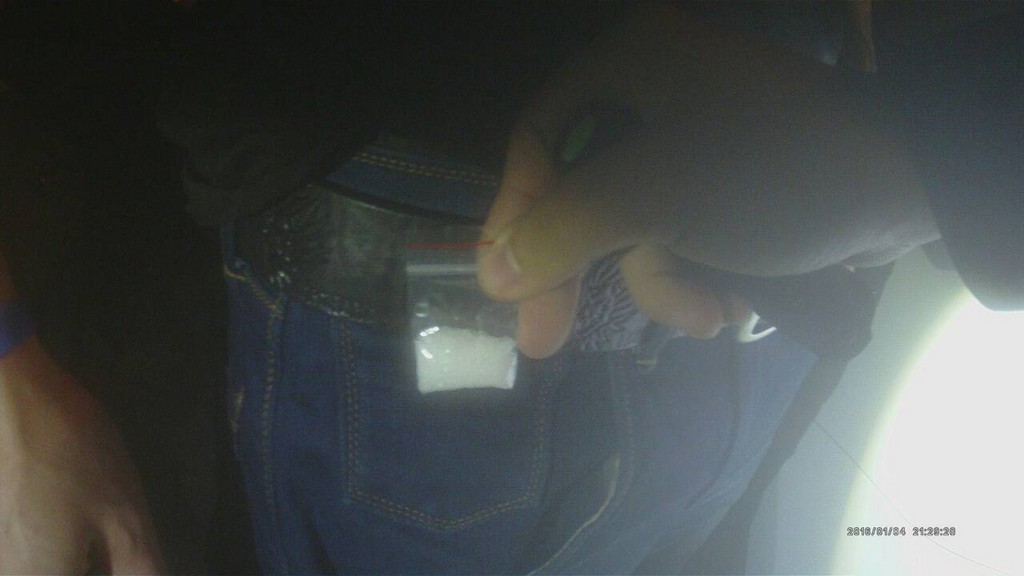員警趨前詢問車內姜姓男子(78年次、無前科)時,就聞到車內傳來濃濃的K菸味,突然甘博倫看見方向盤座上有不明白色粉末,立即進行蒐證並詢問姜男:「這是什麼粉?」,結果姜男竟回答:「沒有啦!這是灰塵。」並順勢要用手將白色粉末撥掉,甘博倫立即制止姜男並請他下車接受檢查,結果分別在姜嫌褲子口袋內及車內菸灰缸查獲K他命2小包,總重3.14公克,姜嫌才坦承確實在車內吸食K菸。