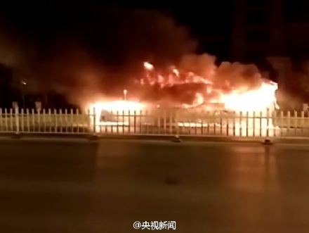 ▲整輛公車被火吞噬。(圖/翻攝自央視新聞的微博/下同)