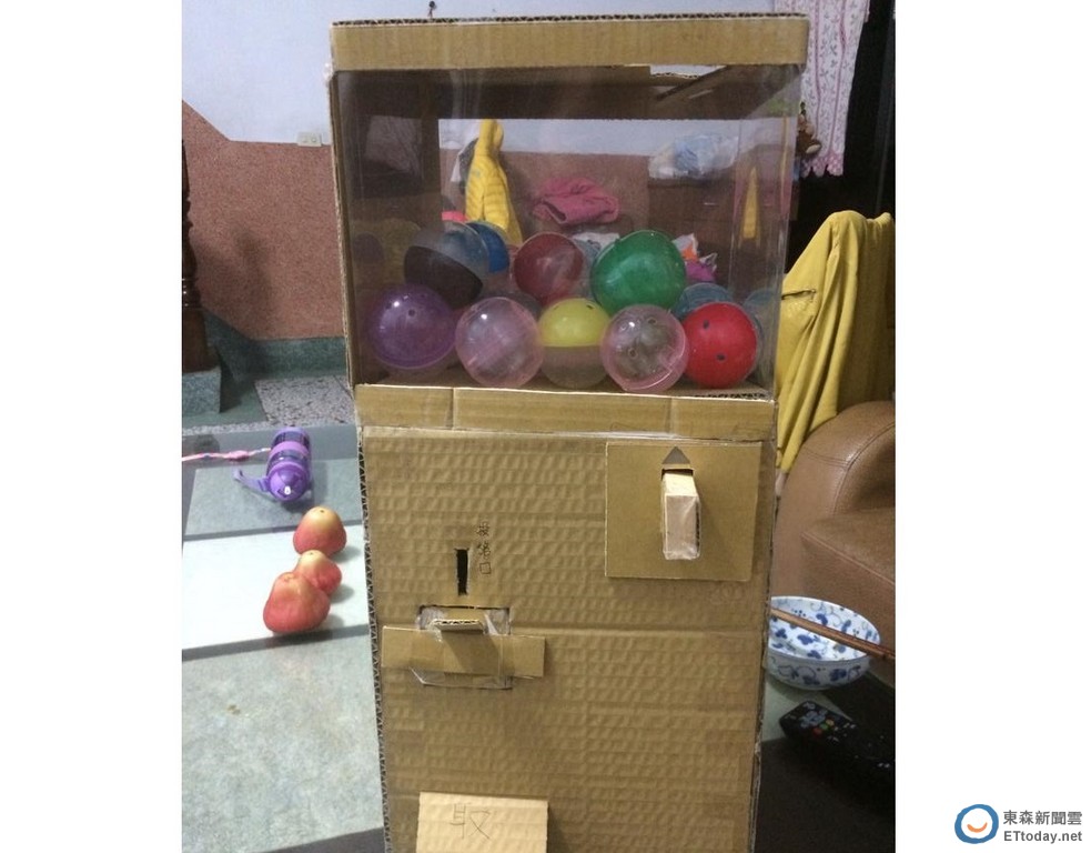 有這樣的爸爸真的太幸福了!網友廖柏筌為了滿足小朋友愛扭蛋的心,每晚11點多下班回到家也不怕累,花將近1周時間自製「扭蛋機」。他也將照片與製作影片PO上網,網友們紛紛表示「父愛無價」、「為了小孩什麼都能學會」。