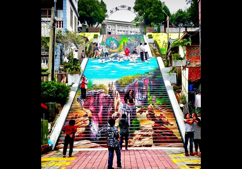 ▲建中國小的3D彩繪階梯最近人氣超旺!(圖/翻攝自陳超明臉書)