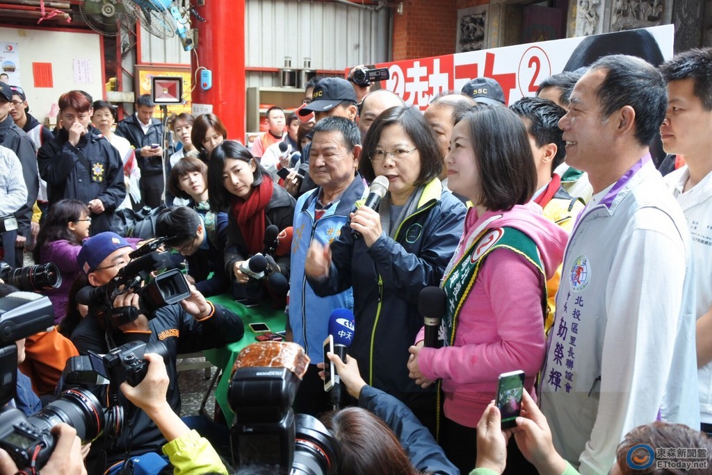 民進黨總統候選人蔡英文6日上午赴北投區慈后宮,為黨籍立委候選人吳思瑤站台,就在演講時麥克風3度故障,連換了4次才有聲音,蔡英文乾脆走出演講台、放棄講稿,走近群眾直接演說,「我們再換一支,再來一次,剩10天大家一拚過去」。