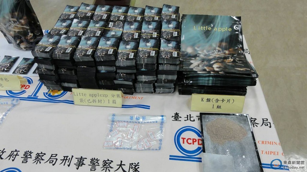 警方發現24歲張姓和20歲施姓主嫌,將搖頭丸、K他命粉末混和後,以「小蜜蜂」的方式在各大酒店販售,為了躲避查緝,自創「Little Apple」品牌,找包裝廠訂製印有蘋果圖樣的外包裝,再自行分裝毒品。很有創意,但也因為Apple圖樣太顯眼,被員警盯上。