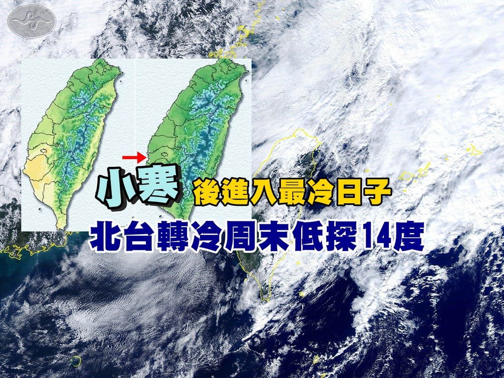 一年第一個節氣「小寒」,象徵進入最寒冷時候,但6日台北並不寒冷,最低溫18.2度,和過去15年相比堪稱是最不冷的小寒。中央氣象局預報,入夜開始東北季風帶來冷空氣影響,北部逐漸降溫,其他地區也會轉冷,西半部及宜蘭低溫下探15度,並持續冷到周末,之後又有新一波鋒面通過、東北季風也會再度增強。