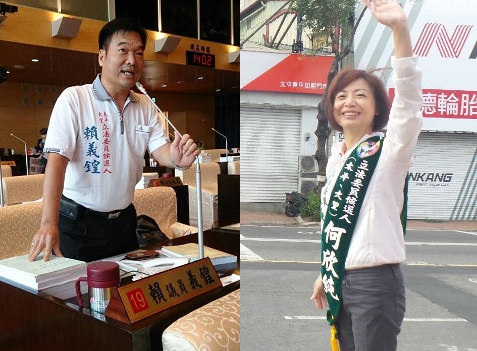 ▲中市第七選區藍綠候選人文宣火藥味濃厚。(圖/翻攝自賴義鍠臉書、何欣純臉書)