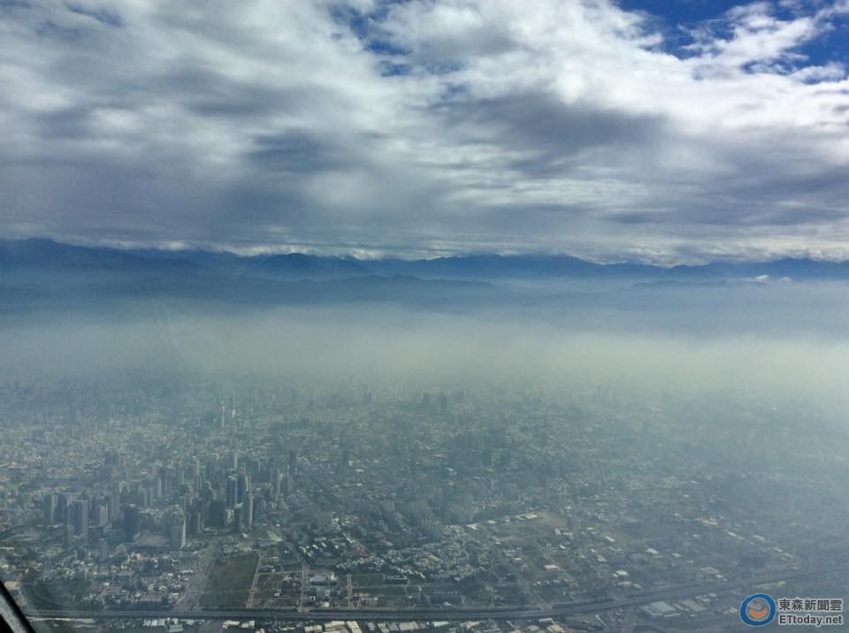 ▲12月9日,當台中市數個空品測站紫爆,空拍宛如毒氣城。(圖/Alex Li提供)