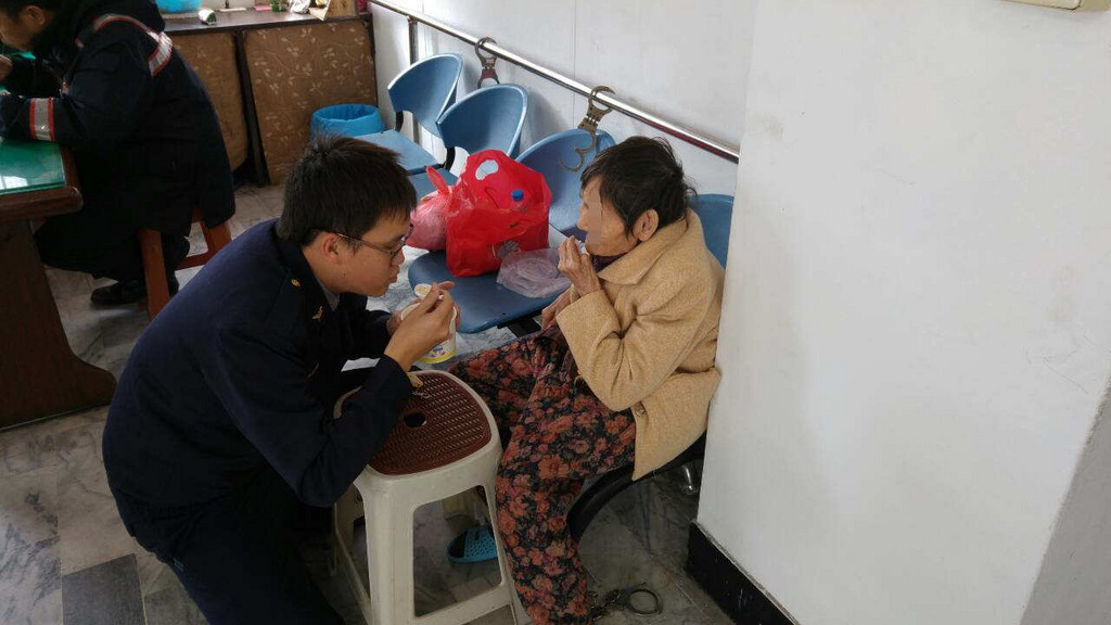 擔心粥太燙,老奶奶吃不了,員警還蹲下身來,端著碗幫忙吹涼,貼心的舉動讓老奶奶直呼:「那怎麼好意思,我們以前的警察哪有這樣!」等到老奶奶的兒子趕到將她接回時,她還不斷感謝警方:「這粥我現在吃不完,但這是(警察)大人的愛心,我要帶回去慢慢享用。」