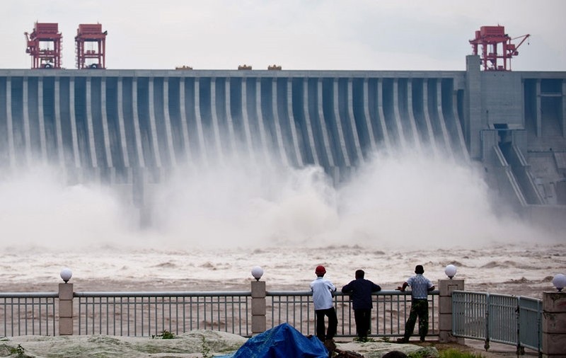 ▲2012年7月10日,三峽水利樞紐開啓洩洪深孔洩洪。(圖/新華社港台部提供)