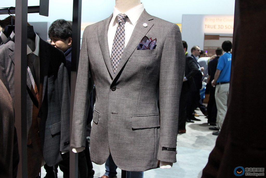 在三星 CES 攤位中,僅次於顯示器、Gear S2 classic 精品表款展示之外,深受媒體關注的,還有一個概念型穿戴裝置,透過將日常衣物的必要元件,置換成 WiFi/NFC 裝置,讓西裝、襯衫,甚至配件可以連網,實現萬物聯網願景。