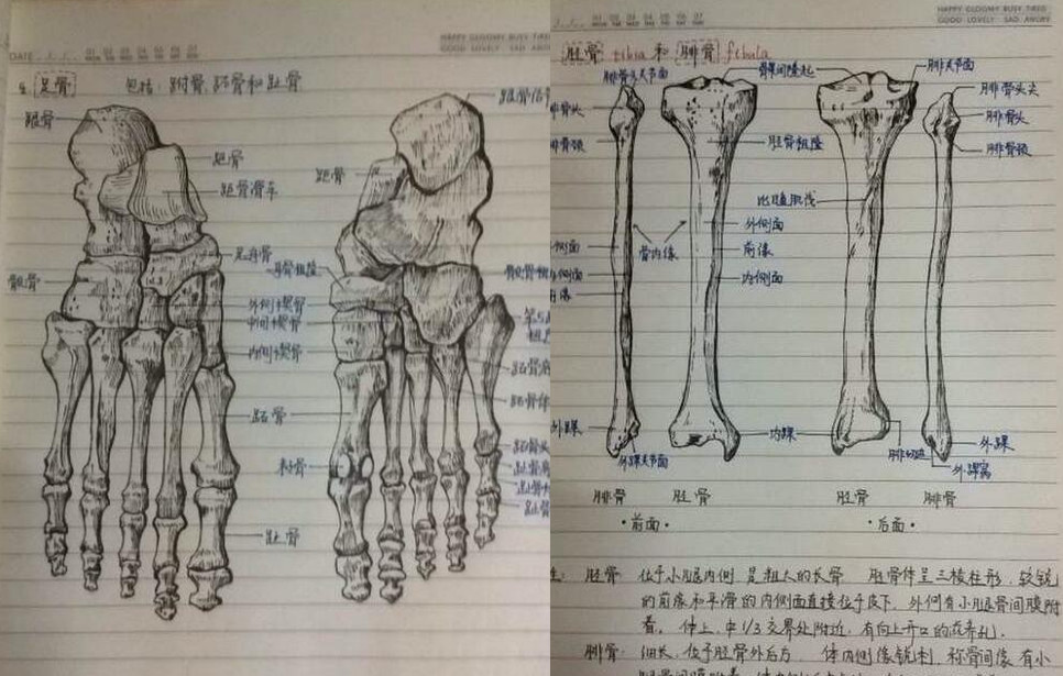 這幾張逼真的手繪骨骼圖最近在大陸網上瘋傳。據悉,這些筆記出自重慶解放軍第三軍醫大學的學生,只見上面的骨骼不管是形狀還是陰影都超細緻,字跡也很清秀整齊。看完網友們紛紛表示,「想成為學霸,首先要會畫畫」、「牛人必有牛逼之處阿」。
