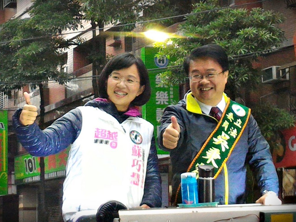 選戰進入倒數計時,候選人把握時間積極搶票,民進黨新北市第四選區(新莊區)2號立委候選人吳秉叡,8日聯合第五選區立委候選人蘇巧慧一同合體掃街,期盼聯手一心、翻轉新莊。吳秉叡也在臉書預告,明晚兩人將聯合舉辦造勢晚會,希望新莊的鄉親能為台灣的未來齊力合體!
