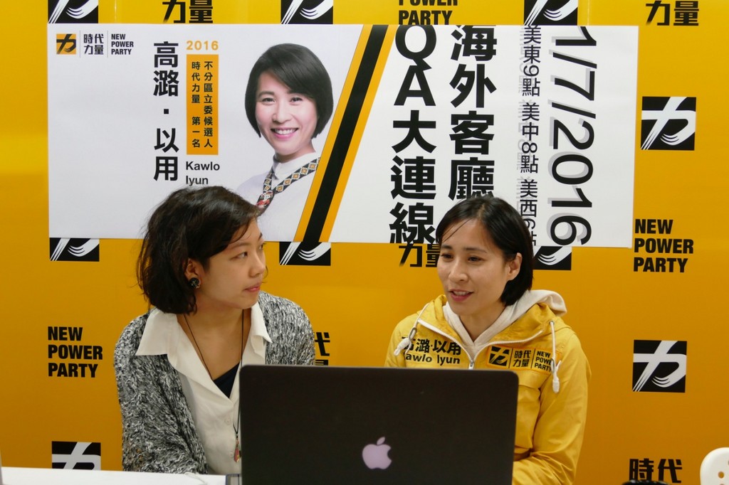 時代力量不分區候選人第一名高潞・以用(Kawlo Iyun)於8日上午,與西雅圖、LA、北卡德罕、佛州甘城四地海外留學生,以youtube livestream的方式舉辦客廳會。